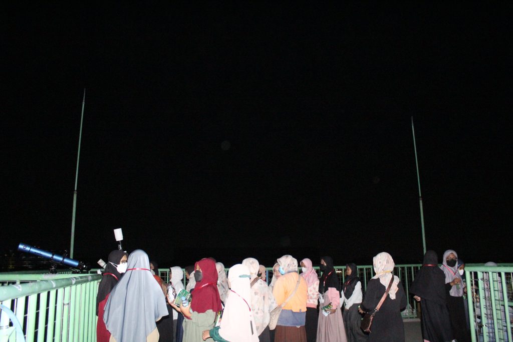 Ustadz AR memberikan penjelasan mengenai bintang beserta gugusannya sebagai salah satu benda langit pada malam hari dan rasi bintang yang menunjukkan arah tertentu. Seluruh peserta berkegiatan di Anjungan Astronomi. Mereka bebas melihat benda-benda langit menggunakan teleskop yang sudah disediakan di wilayah selatan dan utara Dome.